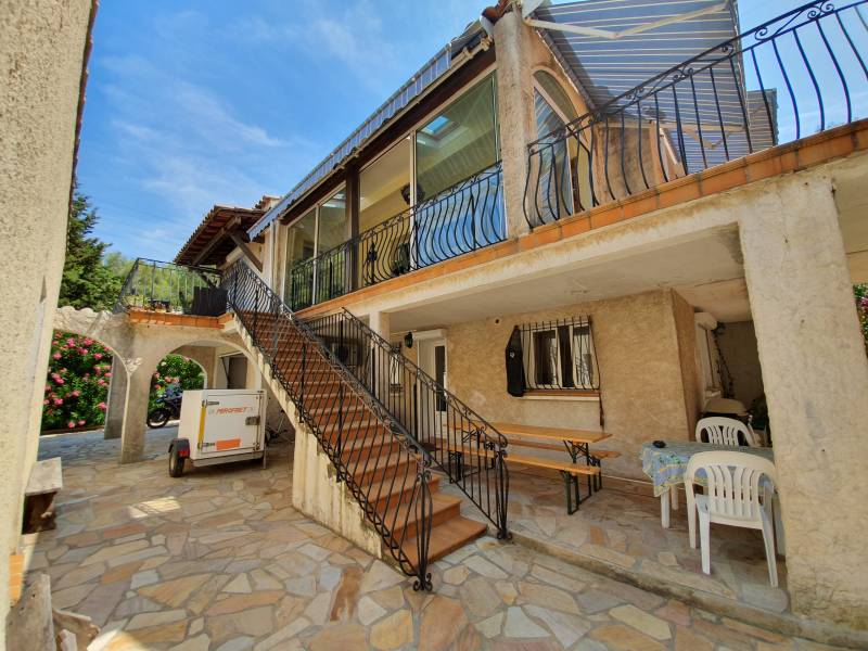 Century 21 Sagittaire Immobilier Le Pradet vous propose cette maison à la vente, orientée plein sud et vous offre à l'étage un double séjour lumineux de 36 m², une cuisine fonctionnelle, 3 chambres confortables, une salle d'eau et des toilettes. Au rez-de-chaussée, vous trouverez une cuisine ouverte sur le séjour, 2 chambres supplémentaires, une salle d'eau et des toilettes. Un vaste garage d'environ 36 m² a été aménagé en un studio d'été avec coin cuisine, salle d'eau et toilettes indépendantes.